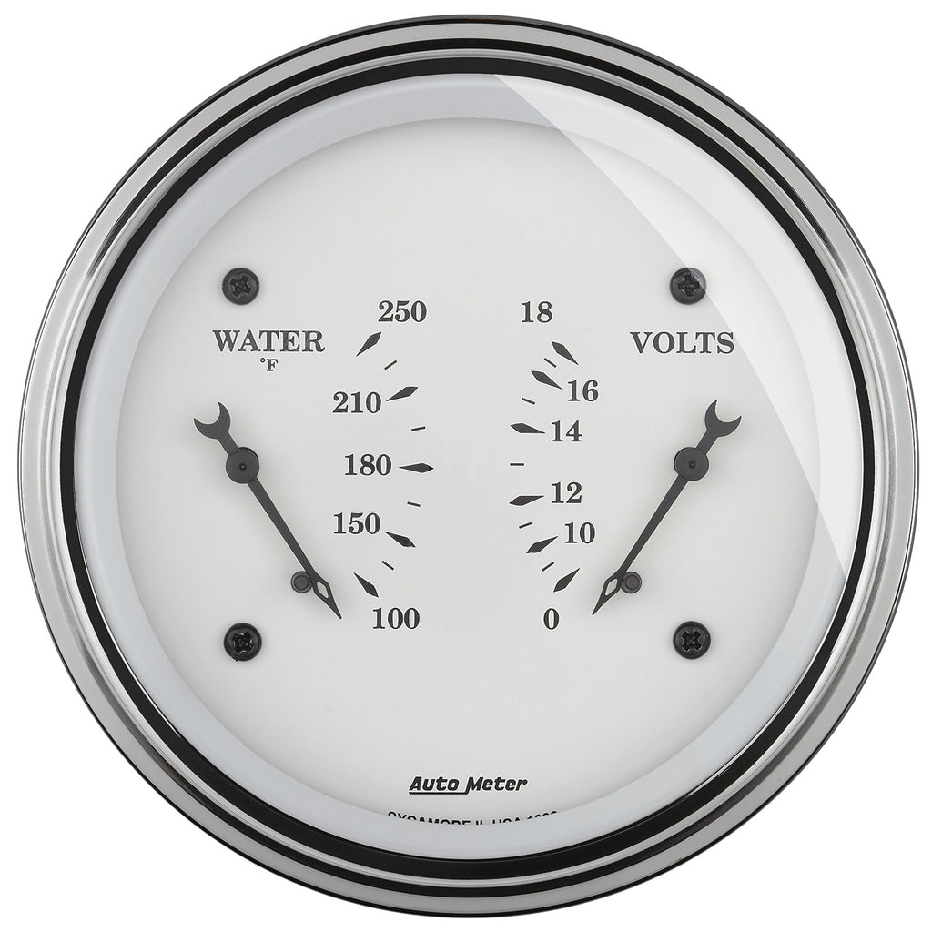 GAUGE, DUAL, WTMP & VOLT, 3 3/8in, 250?F & 18V, ELEC, OLD TYME WHITE