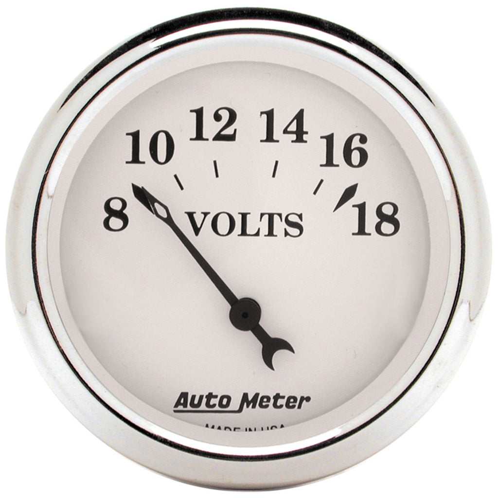 GAUGE, VOLTMETER, 2 1/16in, 18V, ELEC, OLD TYME WHITE