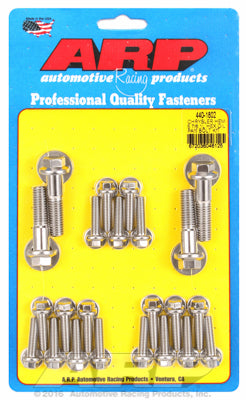 The engineers at ARP spent quite a bit of time developing these highly effective, unique oil pan studs. They’re designed to make it as easy as possible to install a pan and seal it properly. You’ll note that the studs have a radiused bullet nose that serves to locate the pan rails, then allow the nuts to be easily installed without the worry of cross-threading. For those who prefer bolts, ARP’s got you covered, too. Both are available in black oxide finished chrome moly steel or polished ARP Stainless. Also, you may choose betweenconventional hex style or the space-saving 12-point nuts. The stud kits come complete with a special locking flanged nut, while the bolt kits come with washers.