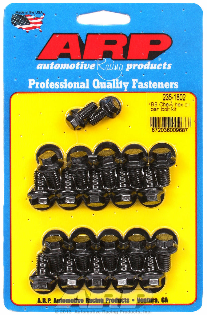 Hex Head Black Oxide Oil Pan Bolt Kit for Chevrolet 396-454 cid (w/ standard 2-pc. cork gasket)