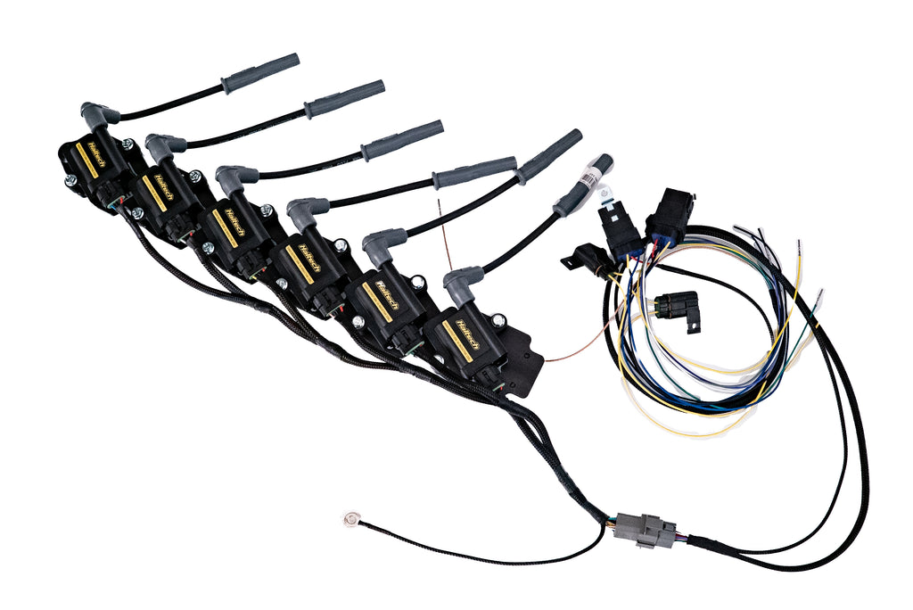 This kit includes our proprietary billet bracket and hardware, six IGN1A Haltech coils, and MSD 8.5mm Super Conductor plug wires pre-cut for the 2JZ application. We’ve included an unterminated flying lead harness as well as a female harness connector to adapt to any harness or aftermarket ECU of your choice.