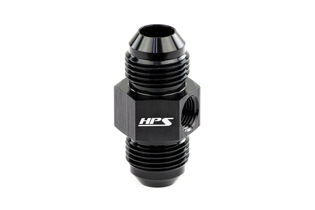 HPS AN Adapter Fittings are designed to be used in a variety of applications such as cooling, oil, and fuel. This adapter features two male 37 degree AN ends and a 1/8" NPT female branch in between to conveniently add sensors, switches, and other components to your system. These fittings are easy to assemble without the use of any special tools. HPS AN fittings are Type II anodized in black for a clean appearance that is corrosion and scuff resistant. Suitable for transporting air, water, coolant, oil, and most fuels.