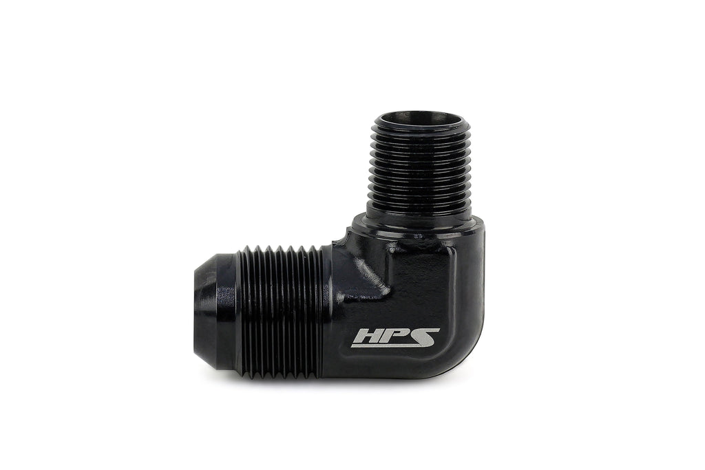 HPS Performance 90 Degree AN Flare -4 to 1/8" NPT Adapter, Aluminum, Black