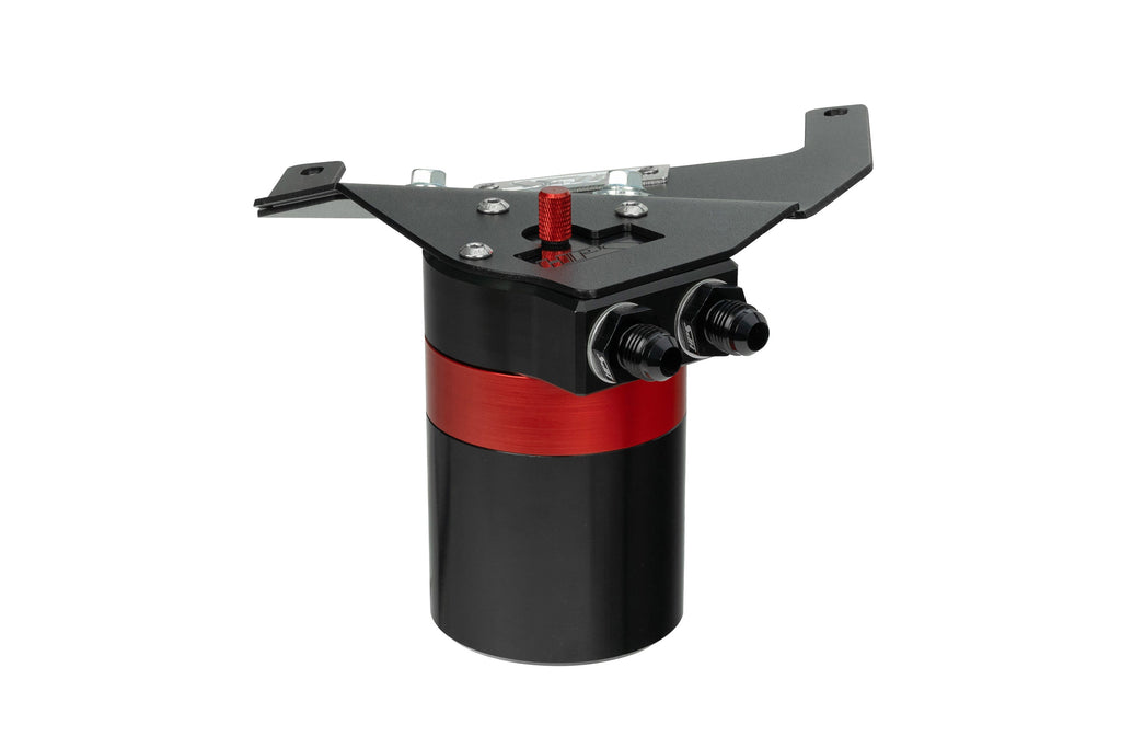 Maximize your engine's potential with the HPS Performance Oil Catch Can Kit. This essential upgrade prevents harmful oil and vapor blow-by from entering your intake system, reducing carbon buildup and preserving optimal octane levels for consistent power. Built to last, the kit features a robust, baffled billet aluminum catch can and durable powder-coated steel brackets. Designed for easy maintenance, the catch can features a convenient dipstick for fluid checks and a large 5-ounce capacity. The hex at the base of the cup allows for effortless drainage using a 14mm wrench or socket. Installation is quick and straightforward thanks to custom brackets made to mount to factory mounting points at the front of your engine bay. Premium -6 AN hoses and user-friendly push-on fittings ensure a leak-free system. Choose the HPS Performance Oil Catch Can Kit for improved performance, increased efficiency, and extended engine life.